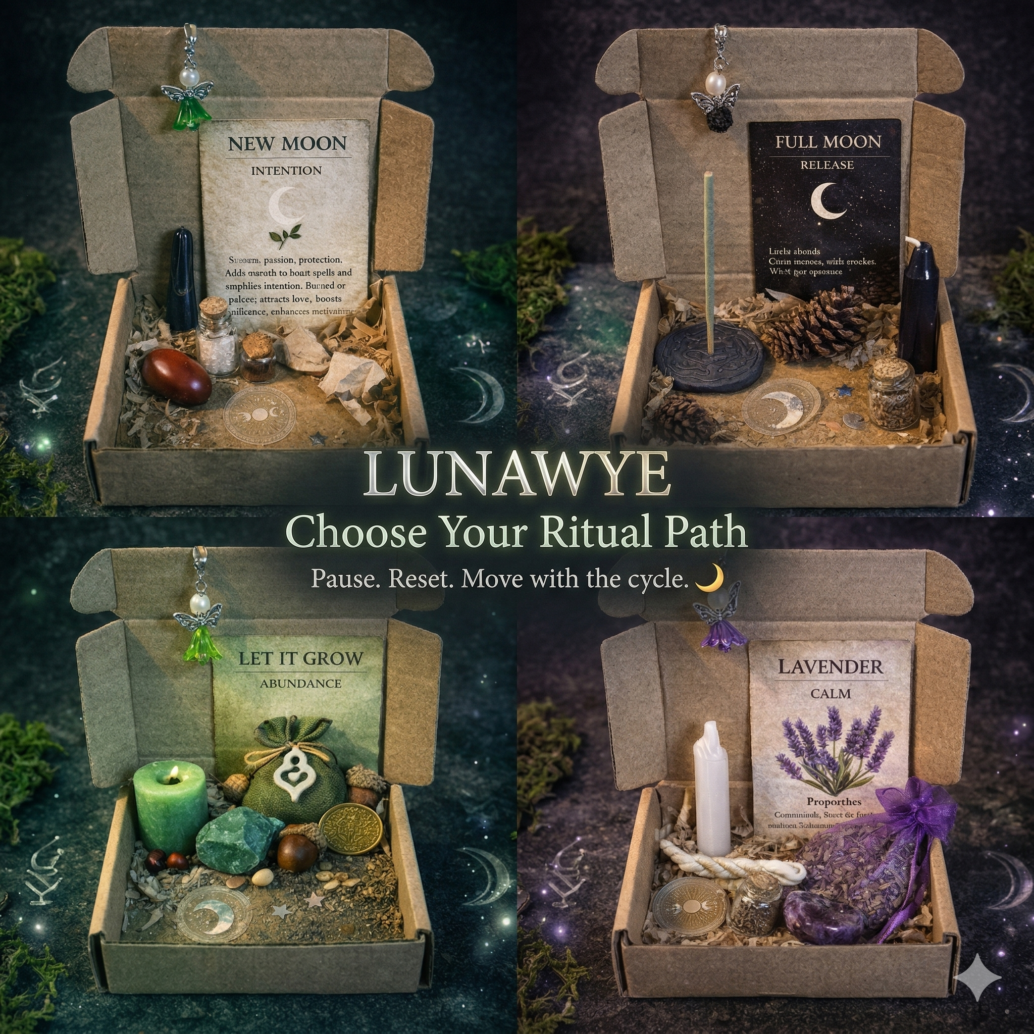 The LunaWye Promise: Product images are for illustrative purposes. Each box is a unique, hand-curated experience. Because no two journeys are the same, your kit will feature one-of-a-kind variations and a handmade relic unique to your order.