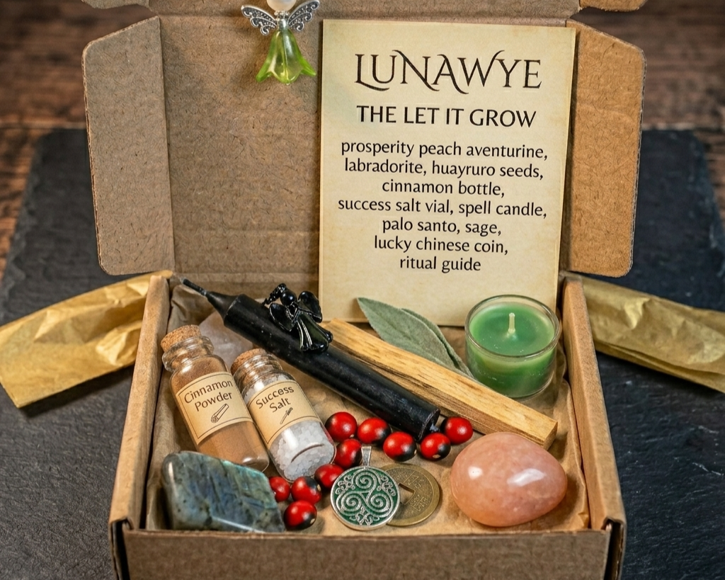 Our "Hero" tier offers the Full LunaWye Experience. These premium collections feature our most rare relics—including Labradorite "Stone of Magic," Huayruro Seeds, and our exclusive Digital Ritual & Affirmation Guides. This is more than a kit; it is a complete sanctuary in a box, designed to show your authority as a manifestor.